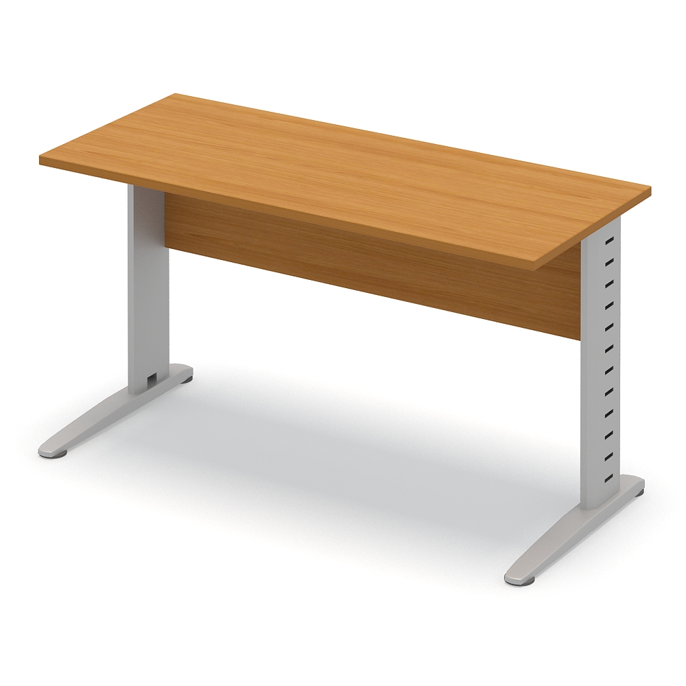Рабочий стол на металлический Т-образных ногах. Перфорированный металл облегчает конструкцию и расширяет возможности технического оснащения вашего рабочего места. Передняя панель выполнена из высококачественного ДСП. Ножки дополнены пластиковыми вставками для минимизации вредя для пола, при транспортировке. Материал: 25мм ЛДСП + металл.Если Вы решили купить Стол офисный рабочий 140x59.6x74.5 ольха шагрень оптом или в розницу со склада Тринити в Москве или Санкт-Петербурге, позвоните в отдел продаж: